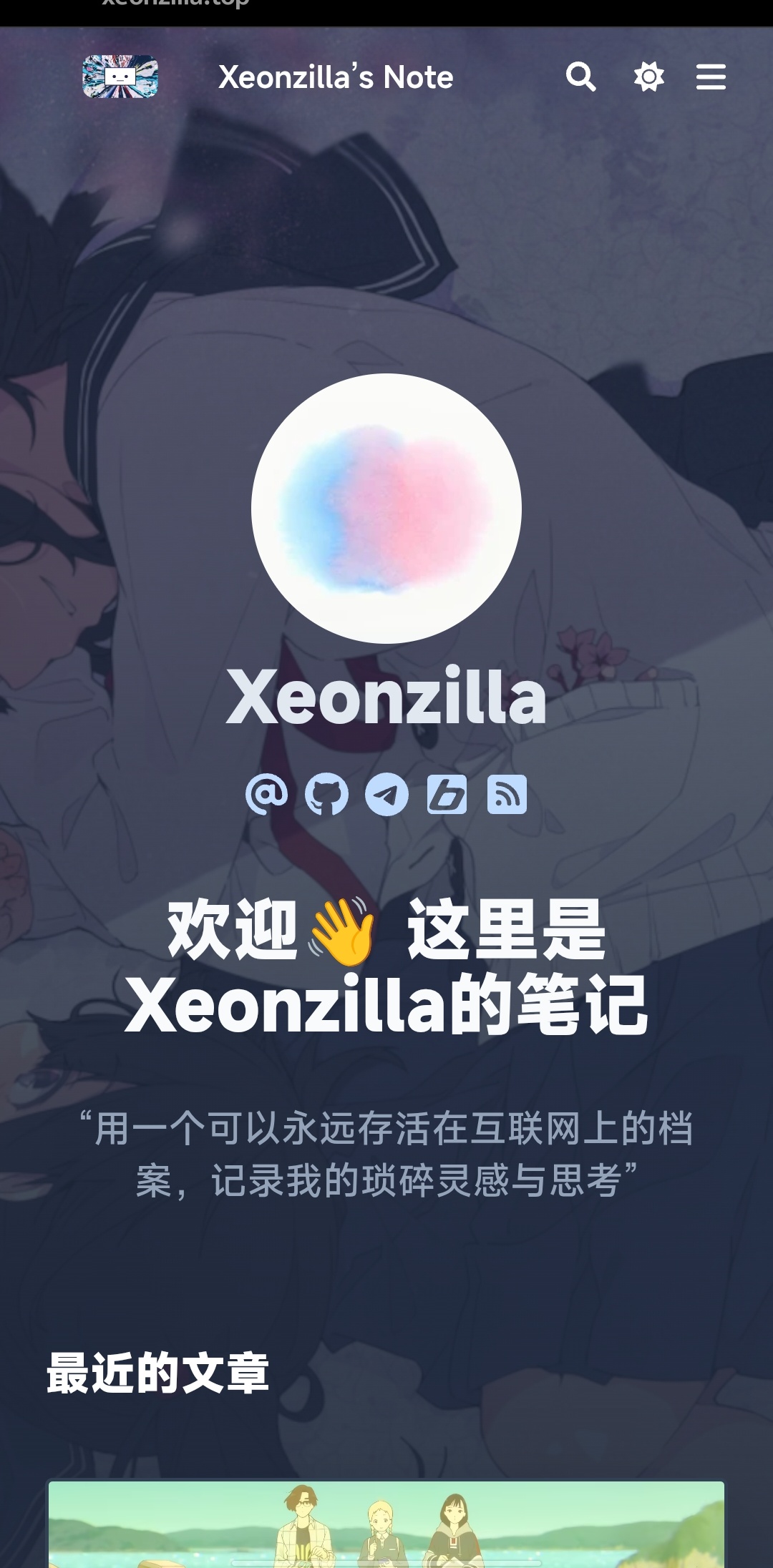 一次在telegram水群的时候,进来了一个新人 @Xeonzilla ,他的主页有个个人博客,是他自己搭的,顿时吸引了我的兴趣。