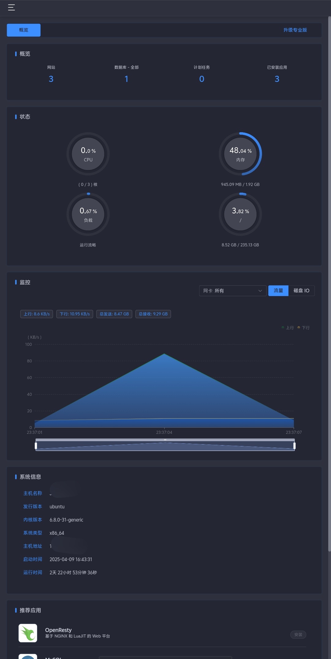 主面当然是一些简单的东西,相当于服务器探针。
