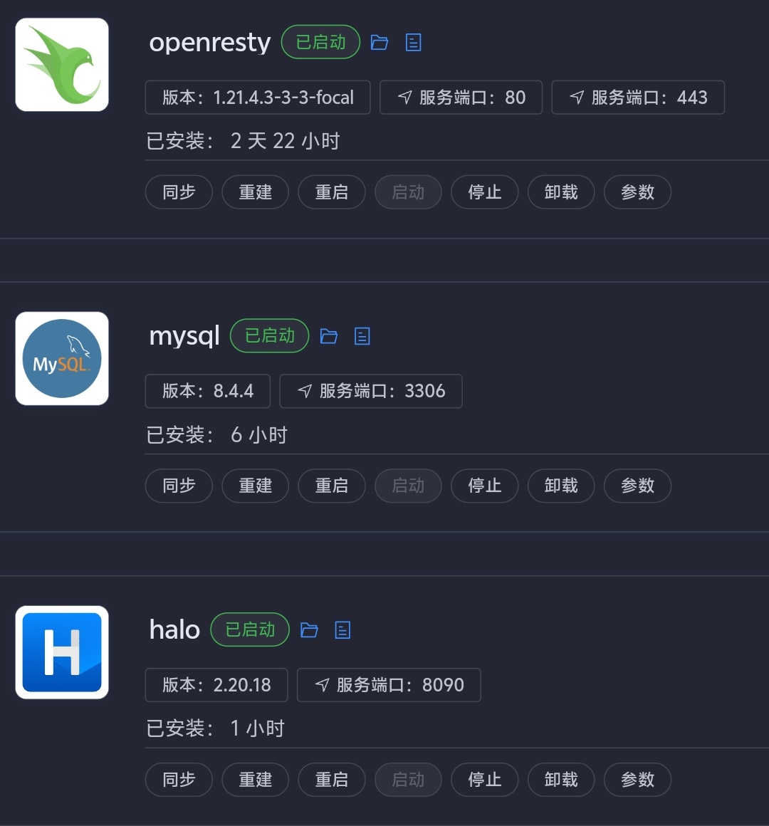 回到家后,准备打开halo官网进行搭建,因为涉及到域名的反代,我也打开了1panel,这是我又发现,在1panel自带的应用商店里有halo,这就是天意!相比之下,用1panel装比在服务器上装可简单多了。所以,就这么一发不可收拾地,把博客搭起来了,说实话,还挺简单的。