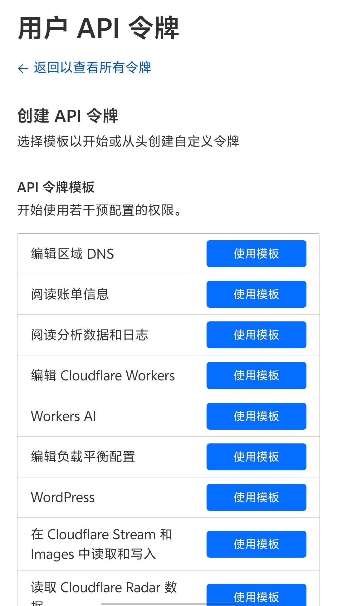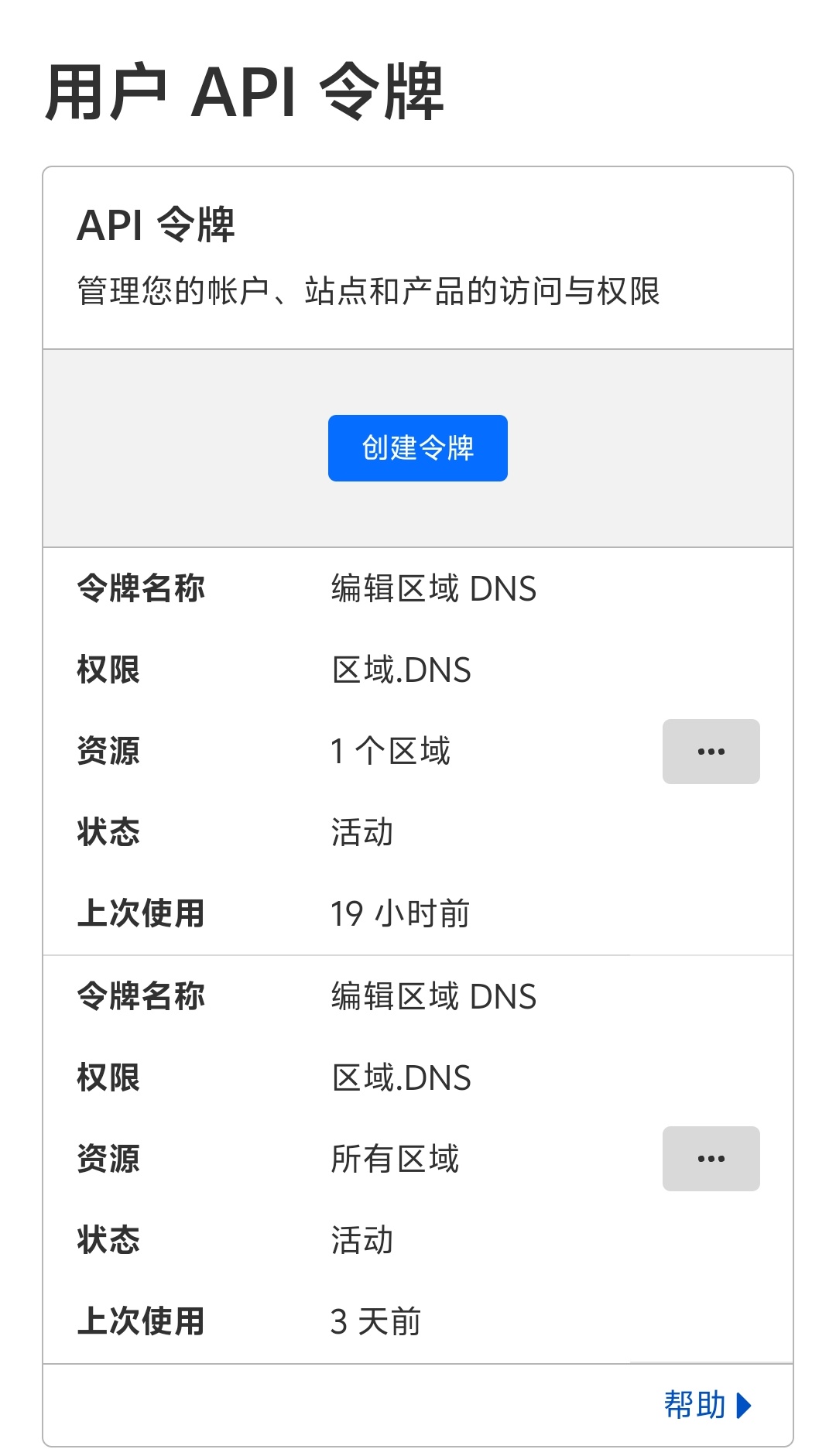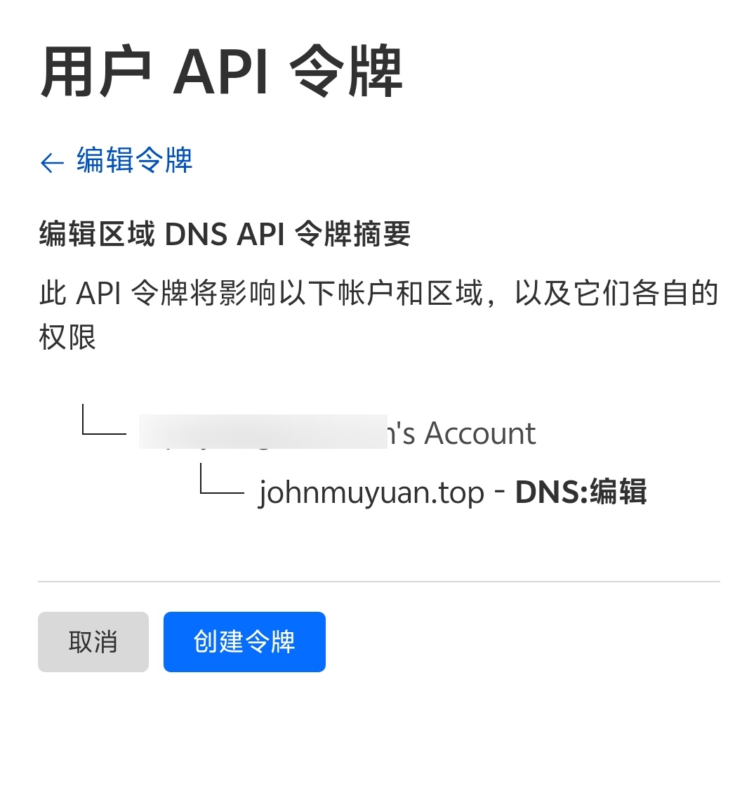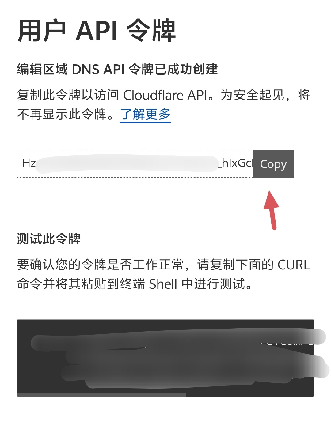 你的令牌就创建好了,点击复制然后粘贴到1panel DNS账户的API Token那一栏,最后点击确定即可。