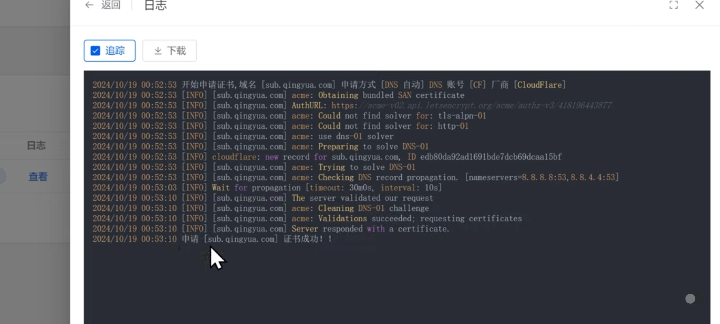 只要最下面出现申请证书成功,说明证书已经搞好了。
