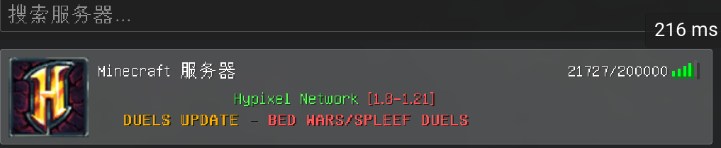 以下分别是在Windows11上使用我自建节点加速的Minecraft hypixel(美国)、Minecraft bedrock TheHive(日本)。